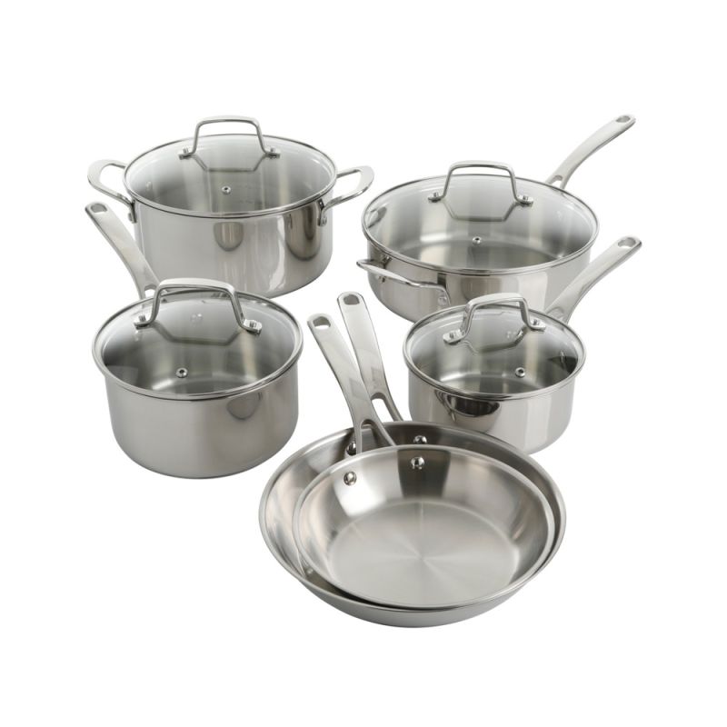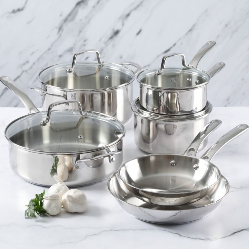 Mst Castelle - 10 Pc Cw Set - Satin Int - Polished Ext - Tempered Glass Lid - Cast Ss Long Handle - Stainless Steel - 0.6 Mm - Gift Box