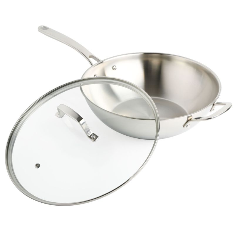 Mst Castelle - 12 In Ss Essential Pan W/ Lid - Satin Int - Ss Long & Short Handles - Polished Ext - 0.6mm - Color Slv